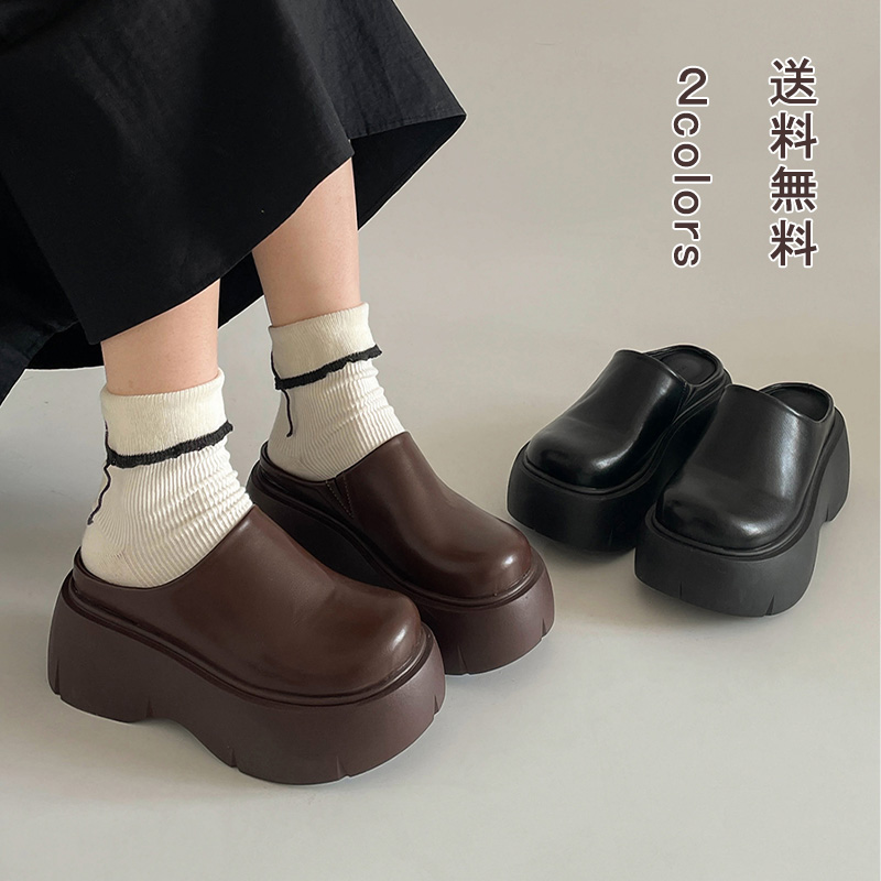 おでこ靴 レディース レザー ラウンドトゥ スリッパ パンプス 厚底パンプス ロリータパンプス ローファー 厚底靴 学生靴 コスプレ靴 メイド靴 ロリータ靴 美脚 おしゃれ シンプル カジュアル