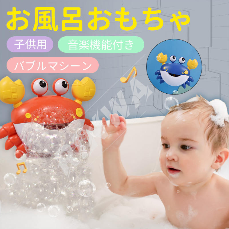 お風呂 おもちゃ 水遊び おもちゃ 電動式 音楽付き 蟹 カニ シャボン玉 バブルマシーン しゃぼんだま液 女の子 男の子 赤ちゃんおもちゃ 知育玩具 かわいい形 安全素材 強力な吸盤付き 誕生日 プ