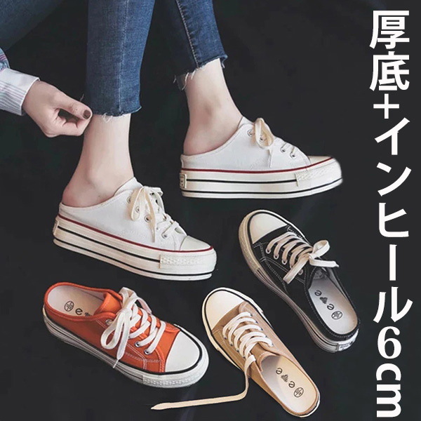 インヒール スニーカー レディース 履きやすい 婦人靴 かかとなし スニーカー 厚底 サボ 白ブーツ 白スニーカー 軽い 6 身長