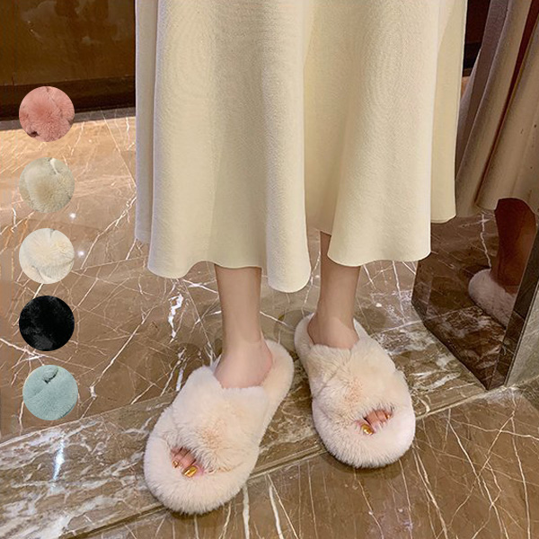 サンダル レディース もこもこ ファーサンダル ふわふわ スリッポン 3ヒール コンフォート ファーパンプス ルームシューズ