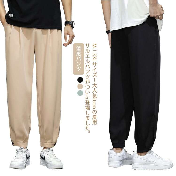 ひんやり 涼感パンツ 夏用 メンズパンツ サルエルパンツ 接触涼感 カジュアルパンツ メンズ ジョガーパンツ サルエル ボトムス パンツ 9分丈 ワイドパンツ 薄手 涼しい