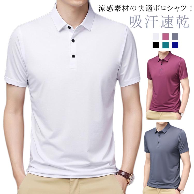 ポロシャツ メンズ 涼感 半袖ポロシャツ ゴルフ アイスシルク ドライ 吸水速乾 カラーポロシャツ 清涼感 爽やか カジュアル オフィス ビジネス ワークポロシャツ 通勤 旅行 無地
