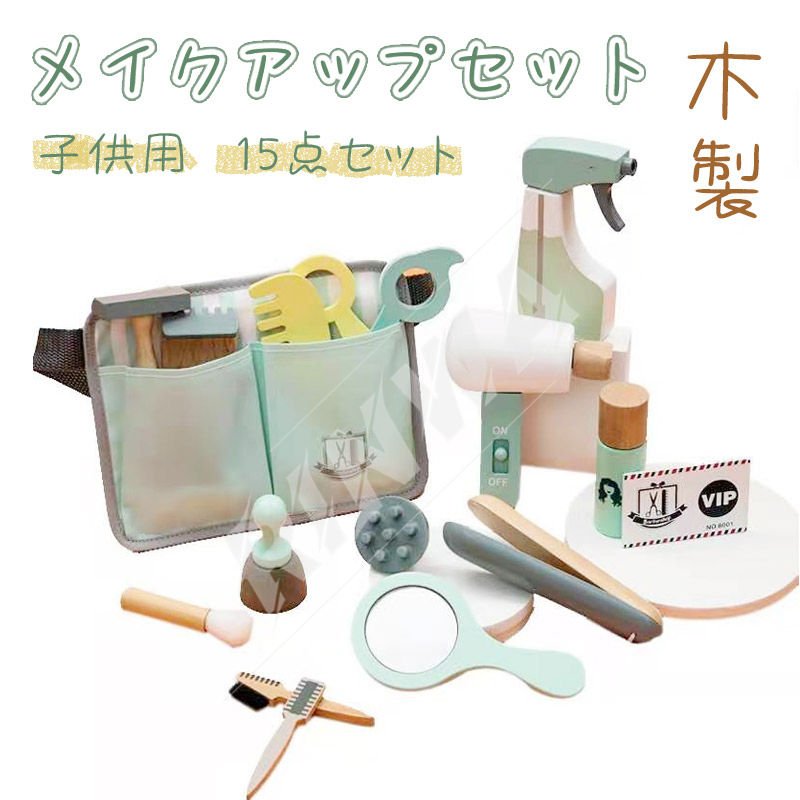 子供メイクアップセット 木製 おままごと キッズ 理髪セット 美容サロン 化粧品おもちゃ ブロードライヤー 女の子 子供の日 クリスマス プレゼント ごっこ遊び コスメおもちゃ