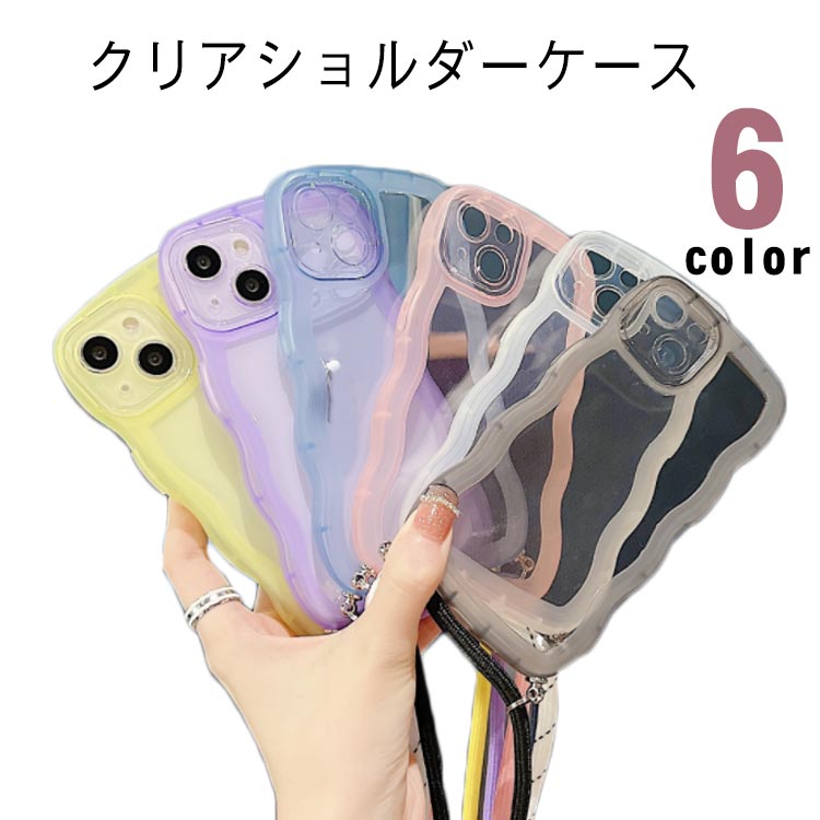 波状のエッジデザイン 透明 背面カバー 落下防止 ソフト ケース 衝撃に強い アイフォン14 14プラス 首掛け 肩掛け アップル