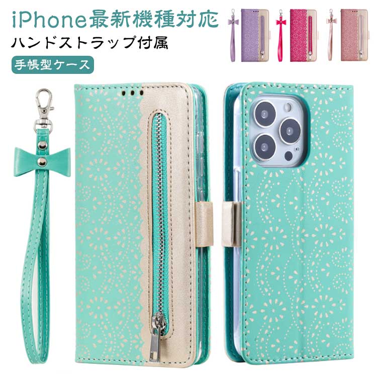 iPhone15 財布型 レース ケース ケース カード収納 手帳型 衝撃保護 小銭入れ マグネット内蔵 ハンドストラップ付き iPhoneケース ケース ウォレット型 手帳型 カード入れ iPhon