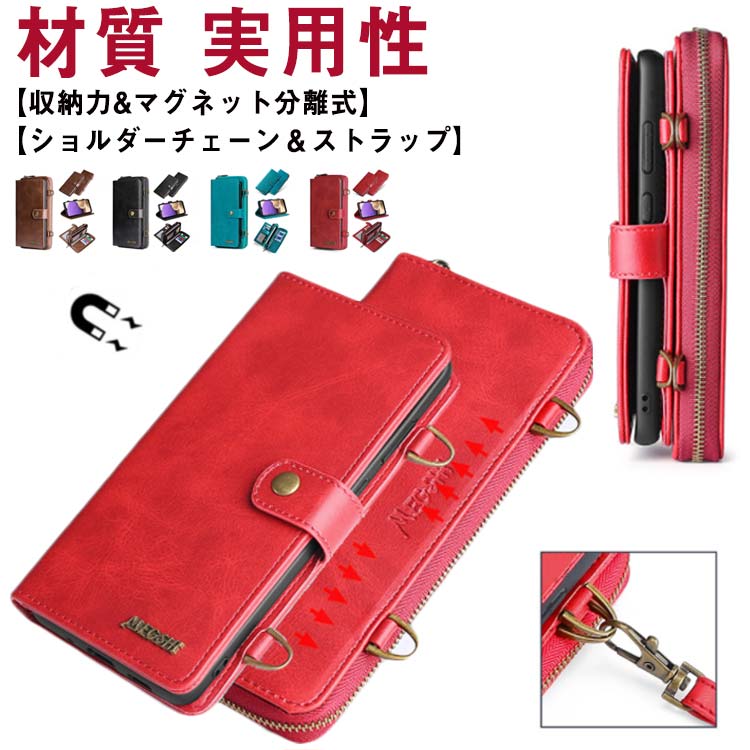 14ケース ショルダータイプ 手帳型ケース 合成皮革 チェーンとお札入れ 肩掛け