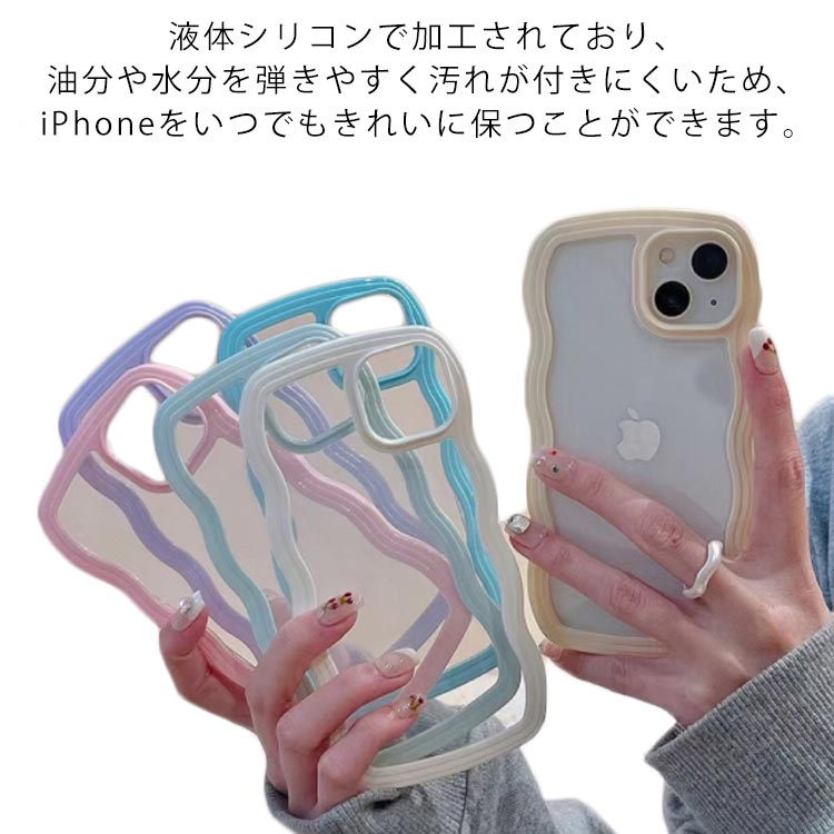 韓国 かわいい iPhone15 ケース クリア iphone15 Pro Max ケース iPhone14 ProMax iPhone13 12 11 iphone ケース 背面 透明 可愛い 波