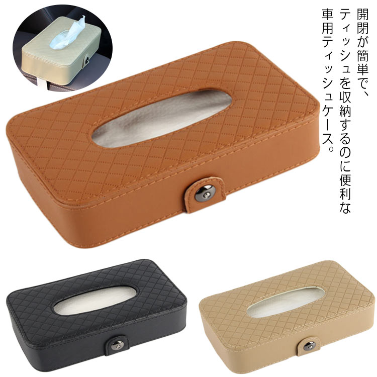 ベージュ ティッシュ ボックス お洒落 サンバイザー チェック柄 マグネット 車載 ティッシュ ブラック 車用