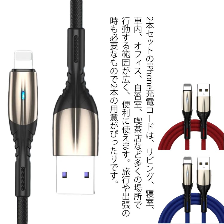 iPhone 2点セット 1.5m 2点セット 長さ1m 2m 3m アイフォン ケーブル 充電ケーブル