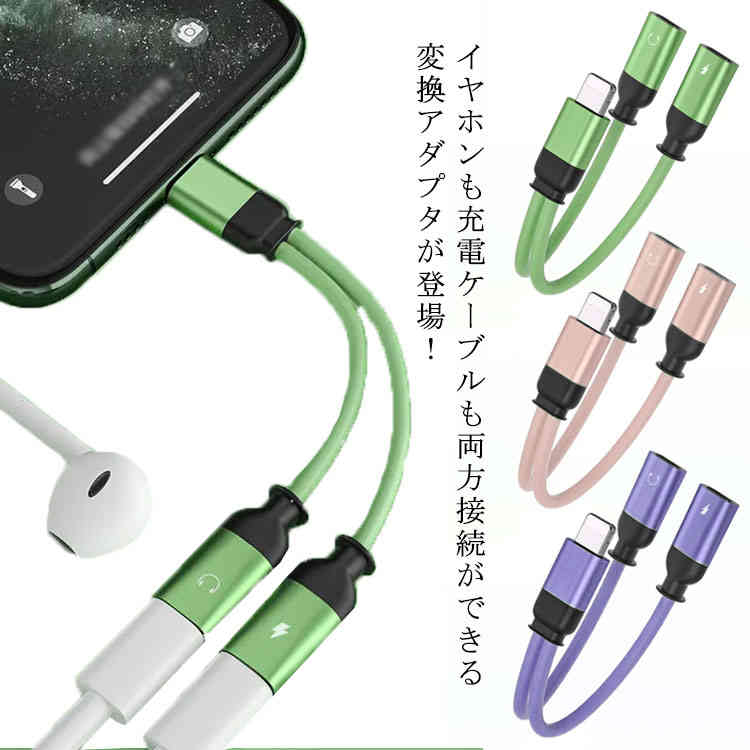 iPhone イヤホン充電 両方 変換ケーブル 充電しながらイヤホン使えるスマートフォン タブレット スマートフォン タブレット用ケーブル 変換アダプター
