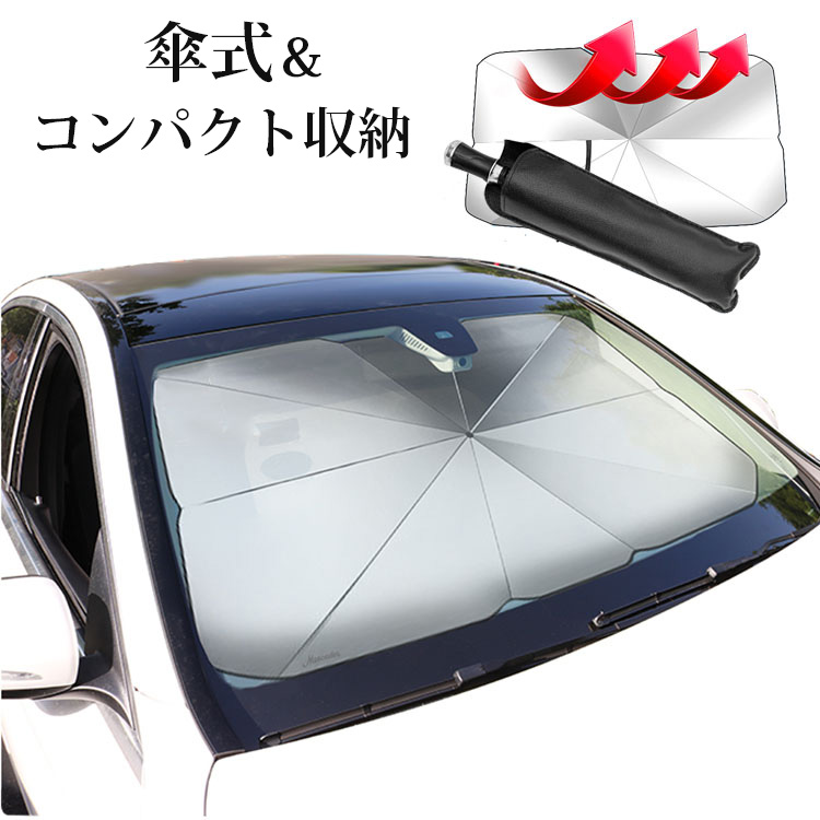 フロントサンシェード 車用 サンシェード 折りたたみ傘仕様 日よけ 紫外線カット 10本骨 コンパクト 紫外線対策 遮光 断熱