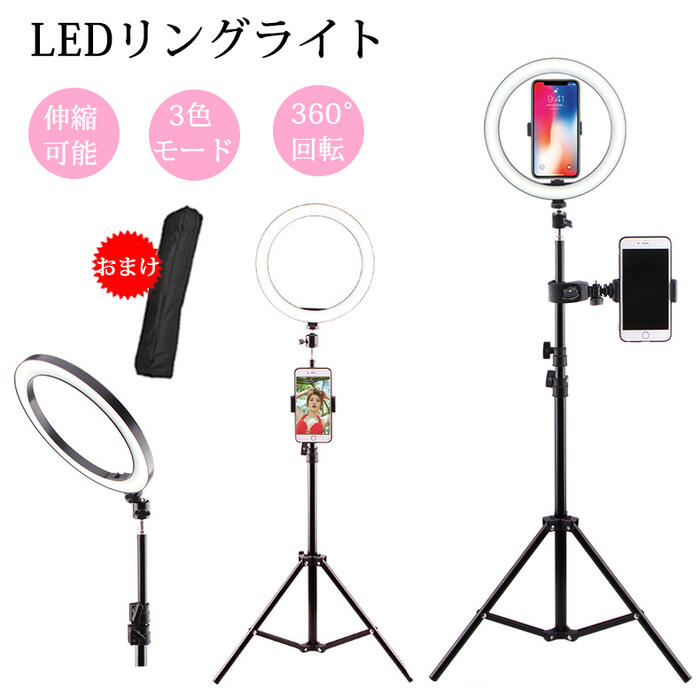 リングライト 撮影照明 自撮りライト 調光 調色 撮影用ライト スマホホルダー 10段階調光 給電 3色温度調整 角度調整
