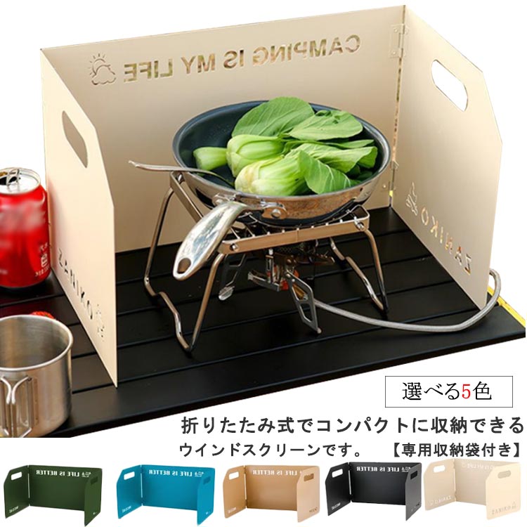 収納袋付き パネル風防 防風 ウィンドスクリーン コンパクト コンロ アウトドア 風除け 風よけ 火力集中 キャンプ 雑貨 バーナー