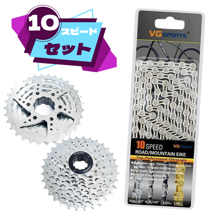 自転車 スプロケット シルバー 10S 11-32T + チェーン 10速 10スピードハーフホローチェーン クイックリンク付 シルバー 汎用品 自転車パッツ