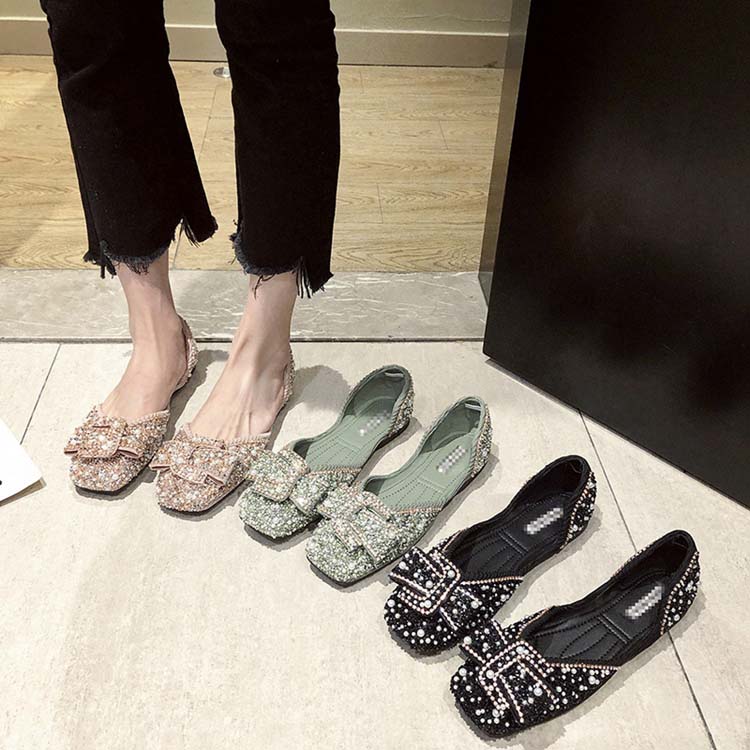 パンプス ぺたんこ 柔らか フラットシューズ 歩きやすい モカシン ローファー パール ラインストーン 幅広 フラットソール リボン飾り 大きいサイズ サンダル モカシンシューズ
