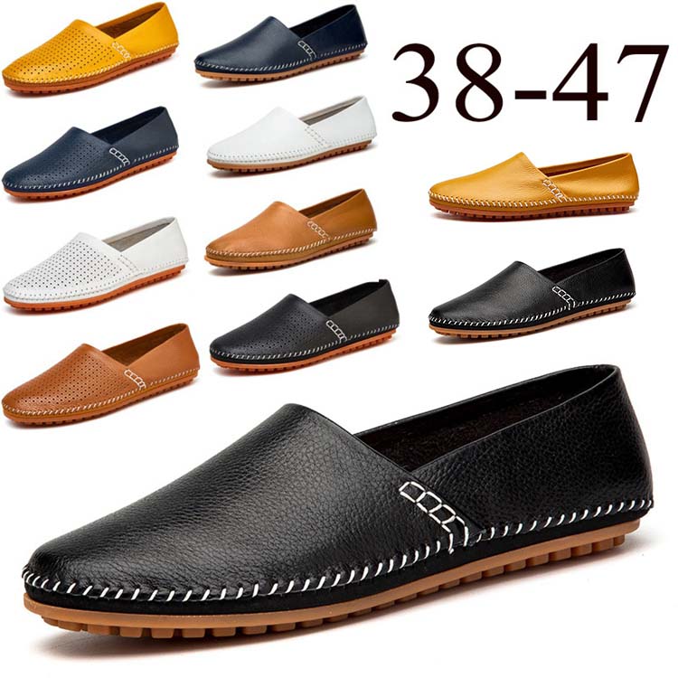 シューズ 通気性 レザーシューズ 本革 牛皮 ローファー スリッポン ビジネスシューズ デッキシューズ 大きいサイズ ドライビングシューズ モカシンシューズ