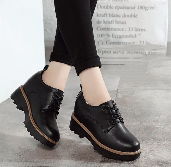 大人おしゃれな厚底レースアップスニーカー 4cmインヒールが抜群の美脚効果をもたらします 靴 レディース靴 ローファー