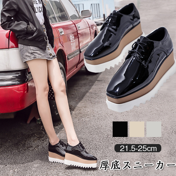 大人おしゃれな厚底レースアップスニーカー 4インヒールが抜群の美脚効果をもたらします 靴 レディース靴 ローファー