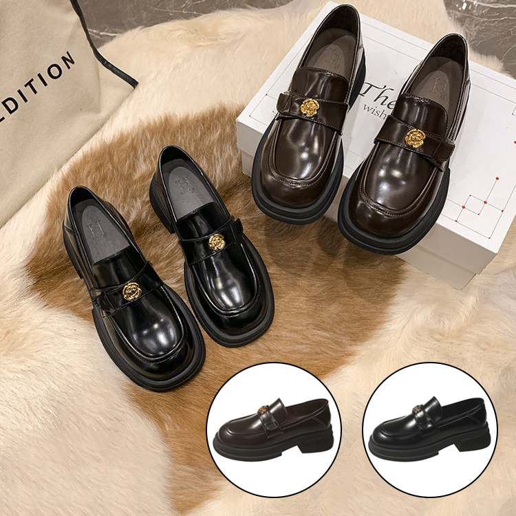 ローファー シューズ レディース 女性 メタルデザイン 大人 黒 ブラック 茶色 ブラウン ホワイト ベージュ 柔らかい 歩きやすい 痛くない ヒール 韓国 通学 通勤 パンプス ローヒール