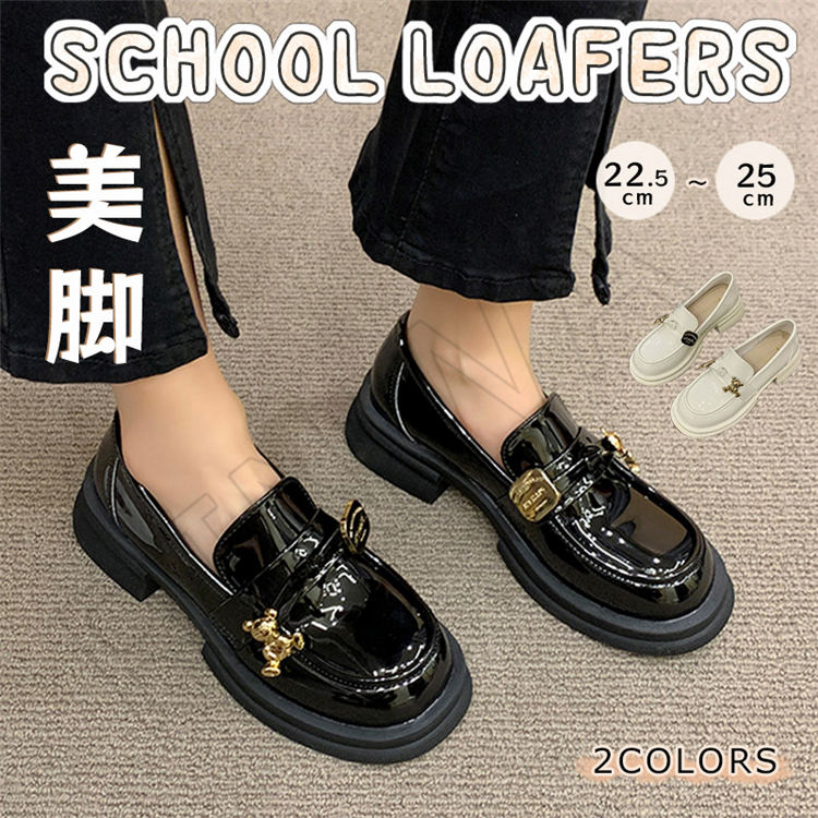 ローファー シューズ レディース 女性 メタルデザイン 大人 PVC 黒 ブラック 茶色 ブラウン ホワイト ベージュ 柔らかい 歩きやすい 痛くない ヒール 韓国 通学 通勤 パンプス ローヒール