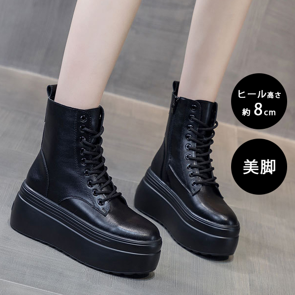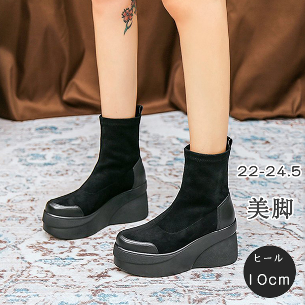 レディース 厚底 黒 シンプル カジュアル 足長 脚長 脱ぎやすい 通勤 通学 おしゃれ靴 レディース靴 ブーツ その他