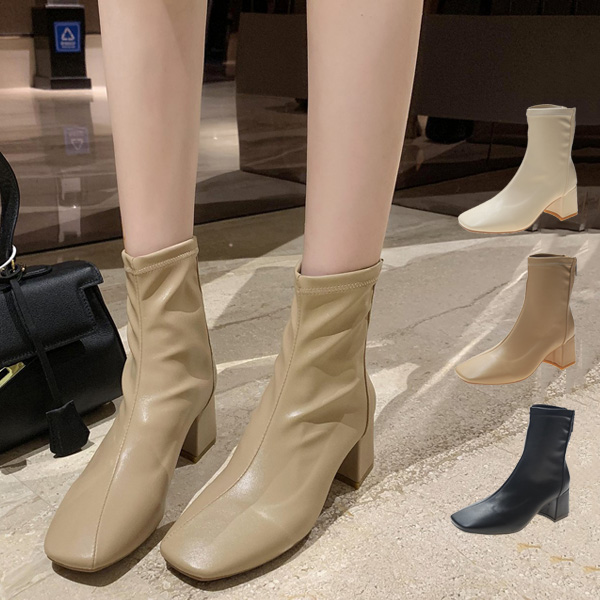 ショートブーツ レディース ブーツ 厚底 ミドルブーツ ハイヒール 10 チャンキーヒール レディース ブーツ ラウンドトゥ 靴 疲れない 歩きやすい 美脚
