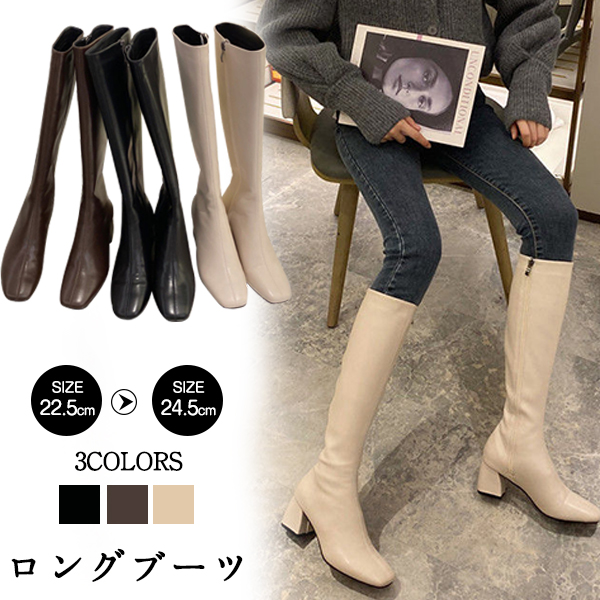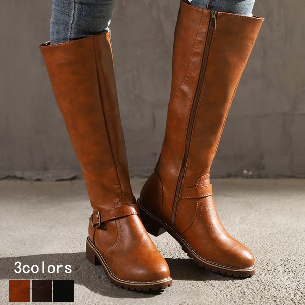 普段使いにも旅行にも最適なロングブーツ ローヒール 幅広 美脚 疲れない 歩きやすい 4色靴 レディース靴 ブーツ その他