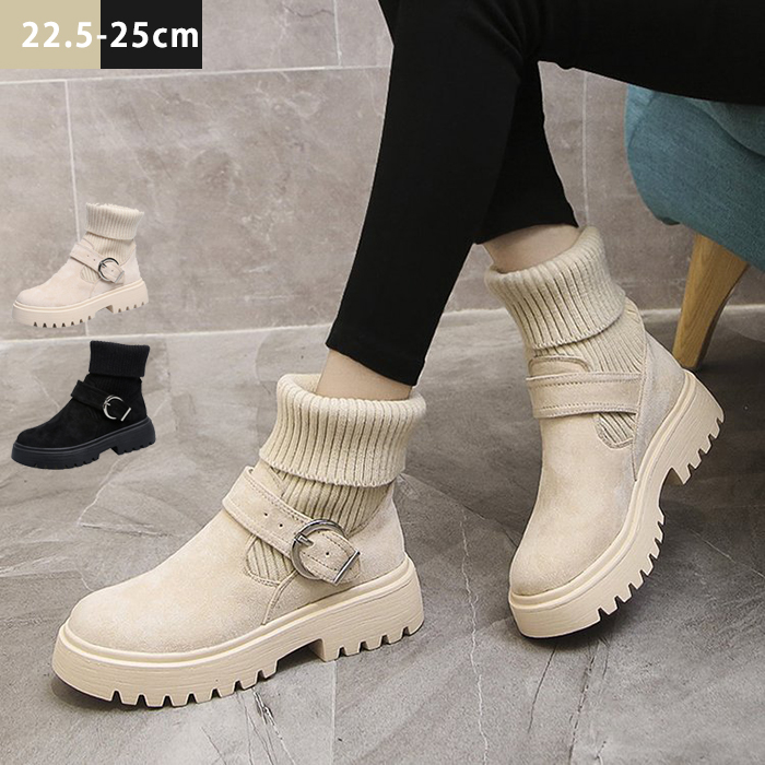 ソックスブーツ レディース ショートブーツ ニットブーツ 秋冬 ローヒール 8cm 靴下ブーツ ワークブーツ 美脚 厚底 柔らかい 疲れない 軽量 軽い 歩きやすい 痛くない 脱げる 安定感 低反発