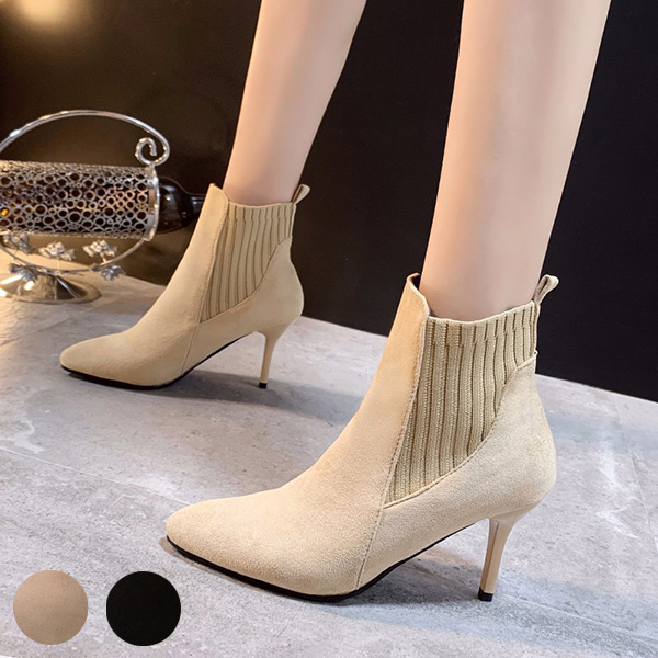 ショートブーツ ピンヒール レディース ブーツ ポインテッドトゥ ブーツ 履き口ニット ヒール高さ7 ピンヒールブーツ