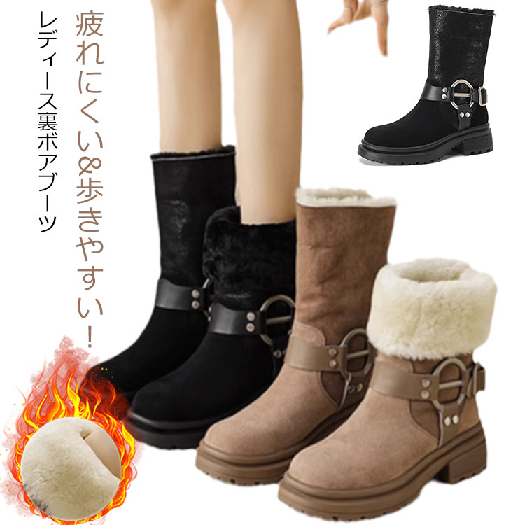 ムートンブーツ レディース スノーブーツ ブーツ レディース ミドルブーツ レディース ファー付き 走れる 痛くない もこもこシューズ あったか カジュアル