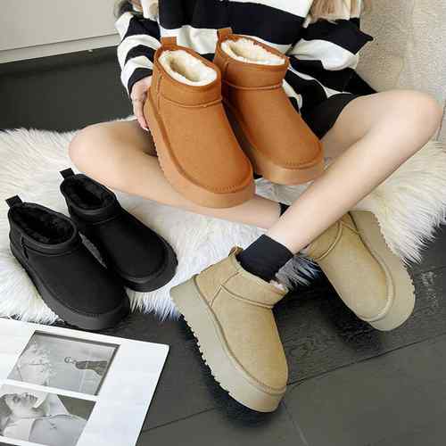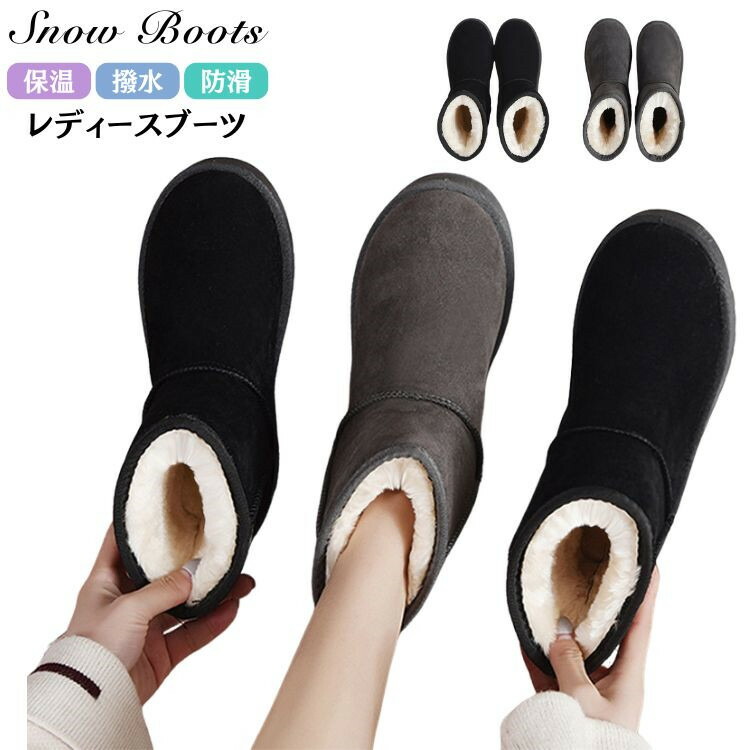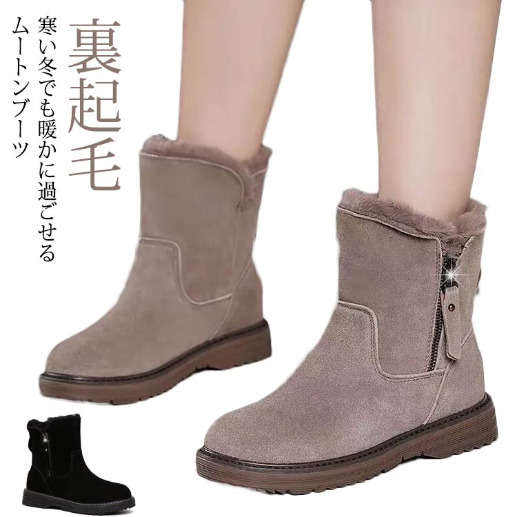 ムートンブーツ レディース 裏起毛 黒 グレー 厚底 スノーブーツ ブーツ ブラック ボア付き 厚底 ショート ソール高4 防寒 スウェード 歩きやすい カジュアル 秋冬 雪靴 シューズ カジュア