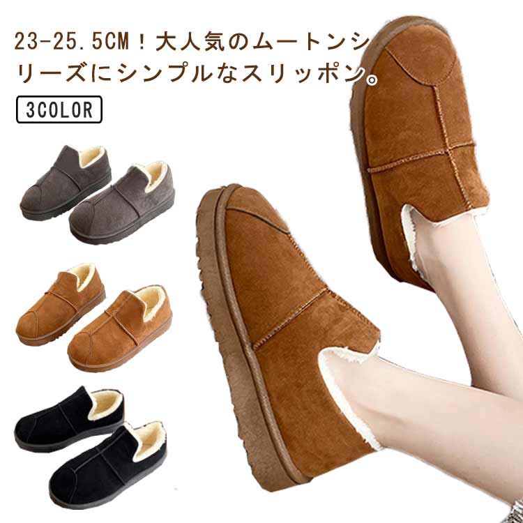 レディース ムートンブーツ 保温 スリッポン ぺたんこ ムートンスリッポン フラットシューズ 防寒靴 防滑 ボア 裏起毛 雪靴 スノーシューズ 冬用