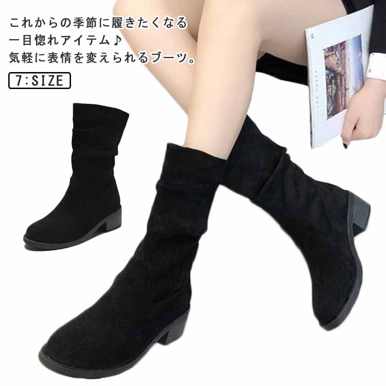 ブーツ レディース ミドルブーツくしゅくしゅブーツ ハーフ丈 フラット底 ローヒール 大きいサイズ スエード ぺたんこ 疲れない 疲れにくい