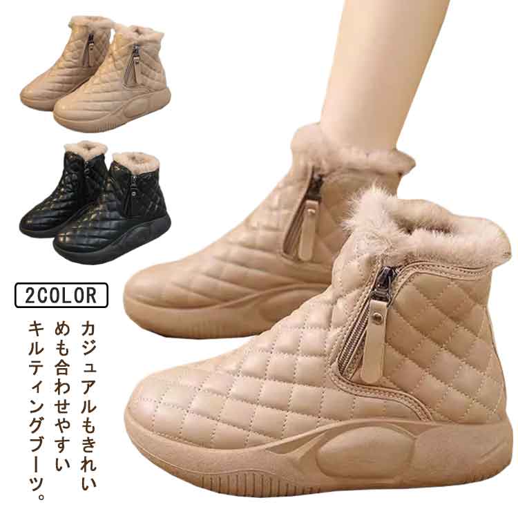 裏ボア キルティング 裏起毛 シューズ ムートンブーツ ショートブーツ レディース あったかボアブーツ 雪靴 スノーシューズ 防寒 ウインターブーツ