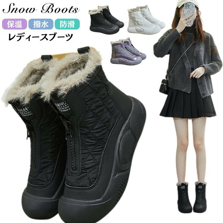 ムートンブーツ 雪靴 レディース 裏起毛 パープル ベージュ 黒 厚底 スノーブーツ ブーツ ボア付き 厚底 ショートブーツ ソール高4cm ファスナー付き 防寒 学生 歩きやすい カジュアル 秋冬