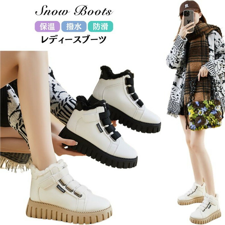 雪靴 裏起毛 レディース スノーブーツ ベージュ 秋冬 ボア付き靴 レディース靴 ブーツ ムートンブーツ