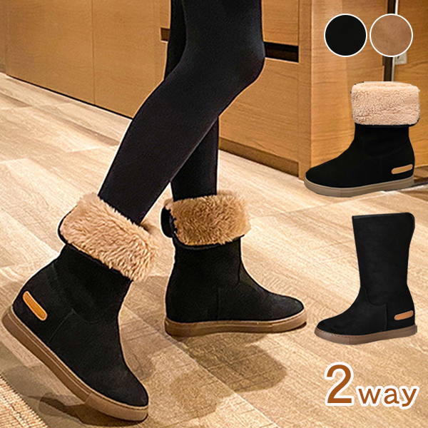 ムートンブーツ レディース ショート 2WAY インヒール ブーツ 裏起毛 もこもこ ふわふわ 歩きやすい