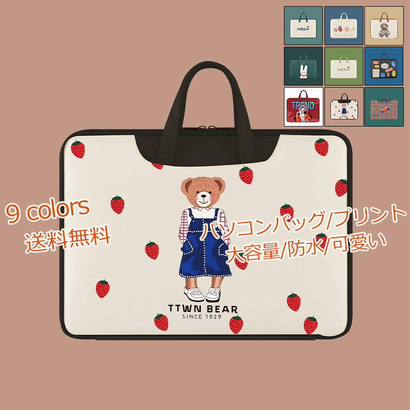 ノートパソコンケース パソコンバッグ プリント 持ち手 手提げ 薄型 軽量 大容量 多機能 防水 耐摩耗 衝撃吸収 小物収納 可愛い 通勤 出張 おしゃれ