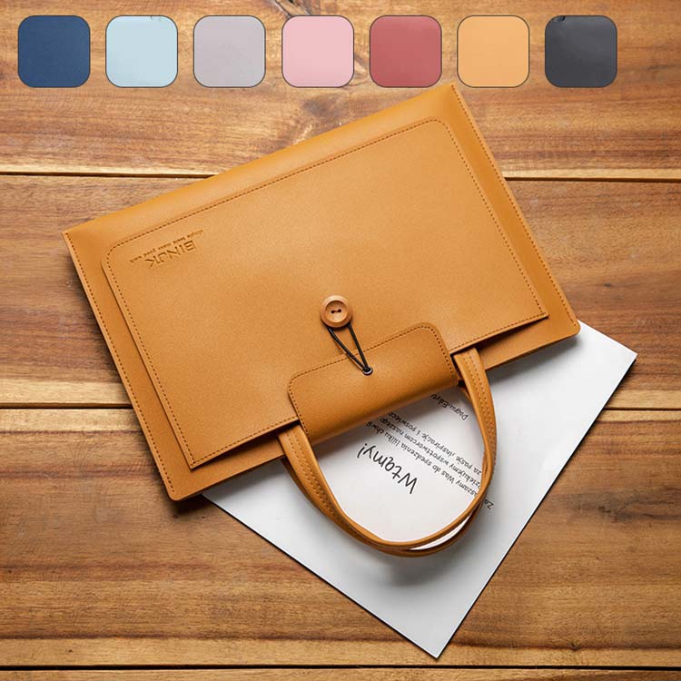 ノートパソコンケース パソコンバッグ 無地 レザー 持ち手 手提げ 大容量 多機能 防水 耐摩耗 衝撃吸収 小物収納 シンプル 通勤 出張 おしゃれ
