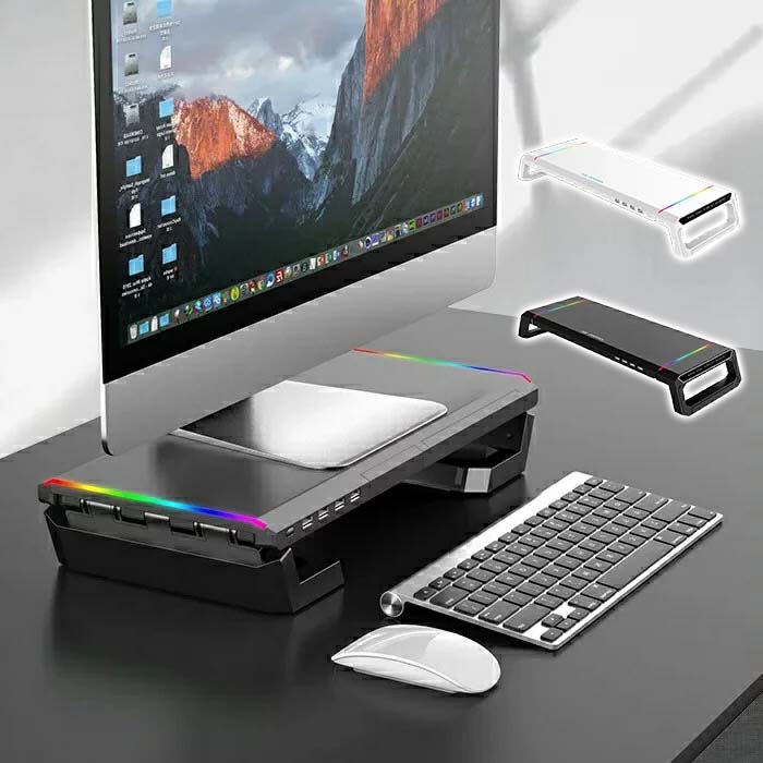 イルミネーション スマホスタンド テレビ台 引き出し収納 スタンド 卓上 キーボード収納 パソコンモニター台用モニター台 ライト ゲーミングモニターデスク