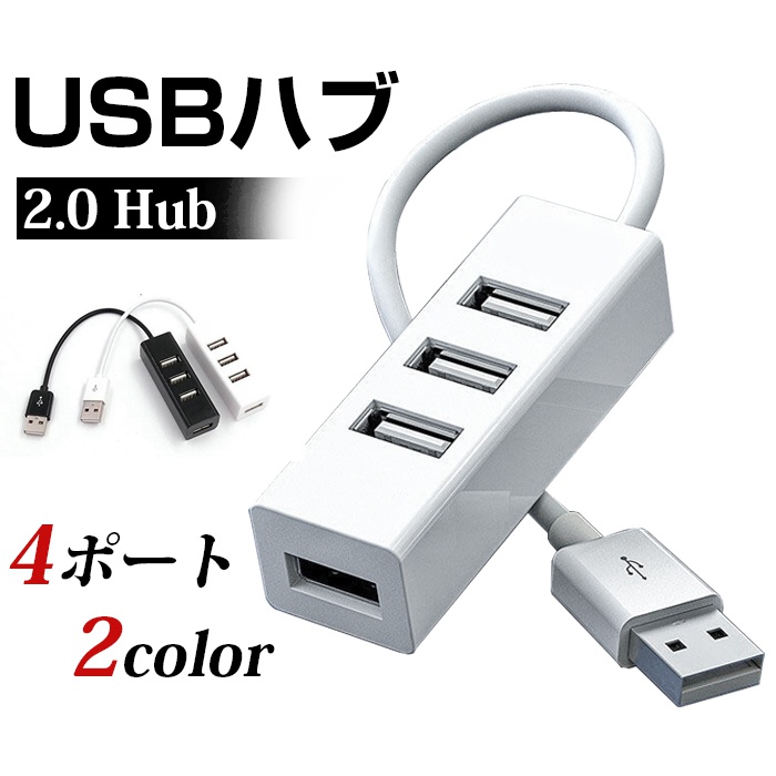 USBハブ 2.0 Hub 4ポート データ転送 バスパワー 小型 コンパクト 高速 軽量 拡張 テレワーク 在宅ワーク 周辺機器