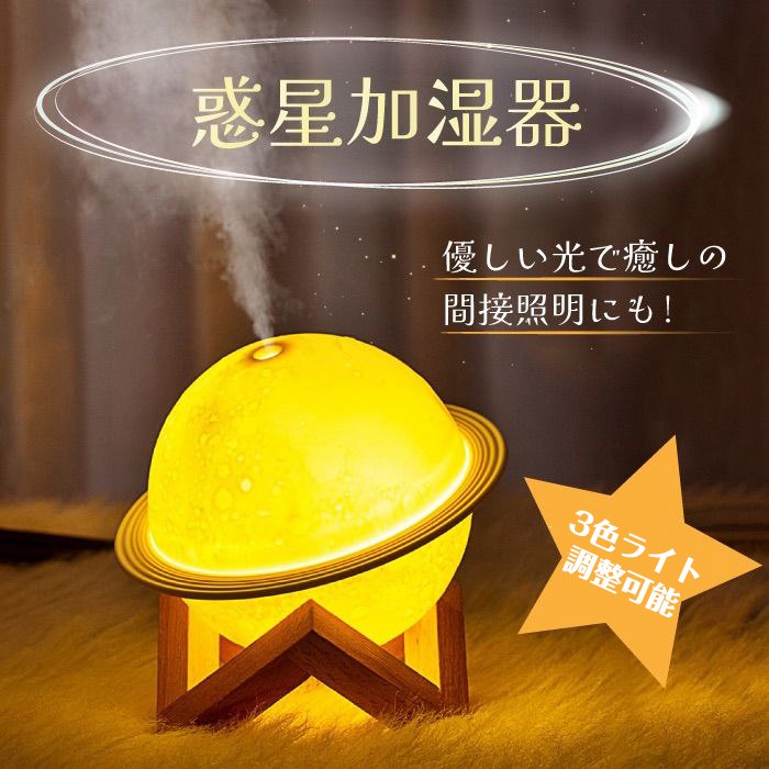 惑星加湿器 加湿器 卓上 ナイトライト USB給電式 静音加湿器 雰囲気ライト 惑星ランプ 3色ライト調整 2段階スプレー調整 エア浄化 静音 空気清浄 乾燥 花粉症対策