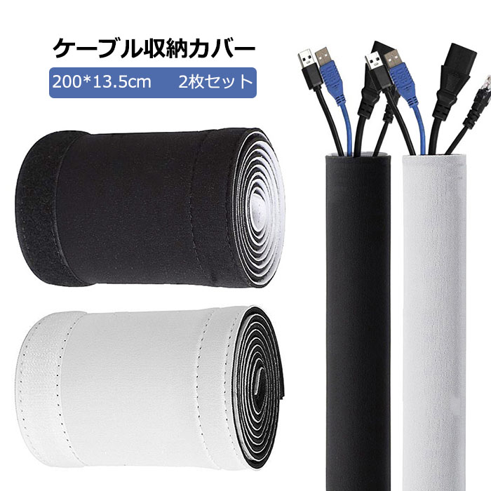 配線カバー ケーブル収納 コード収納 2枚セット 配線整理用 2メートル 整理 面ファスナー 200*13.5cm ケーブル結束 隠し まとめ カットして使える 耐久性に強い 家庭 オフィス