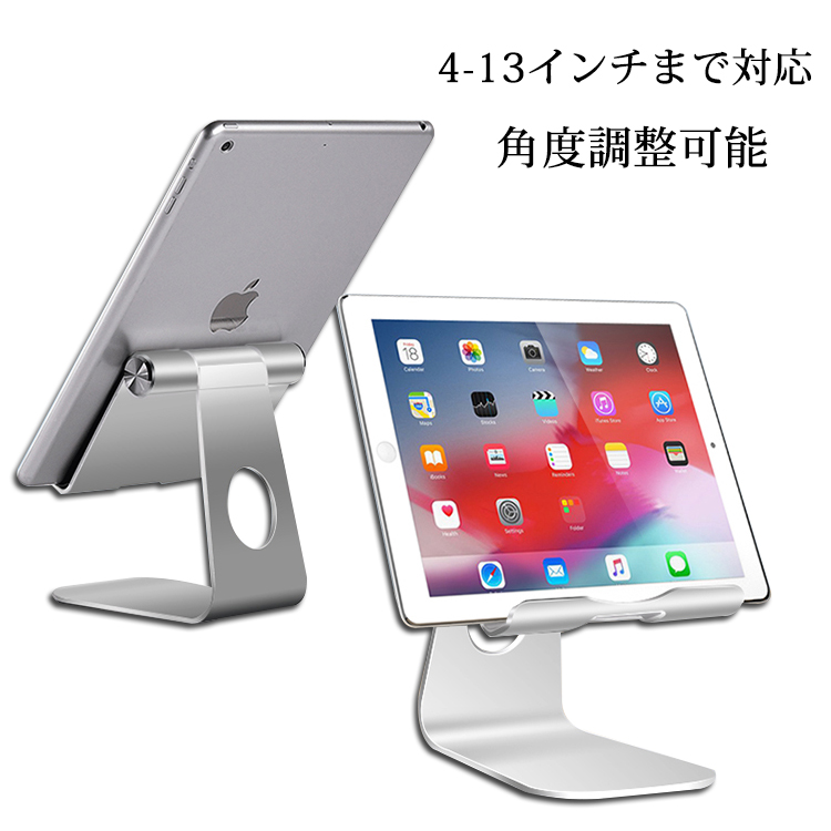 タブレットスタンド 卓上 iPadスタンド 4-13インチまで対応 スマホスタンド 角度調整可能 滑り止め ケーブルホール付き アルミ製