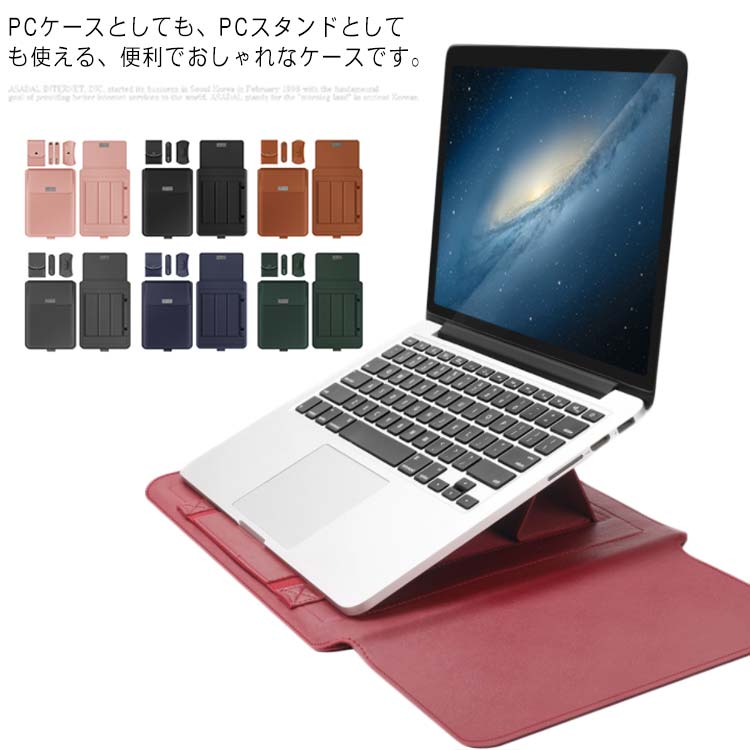 ノートパソコン 収納ケース ノートパソコンカバー 11 12インチ 13 14インチ 15インチ 16インチ 電源マウス収納ポーチ付き スリーブ型 レザー おしゃれ スタンド機能
