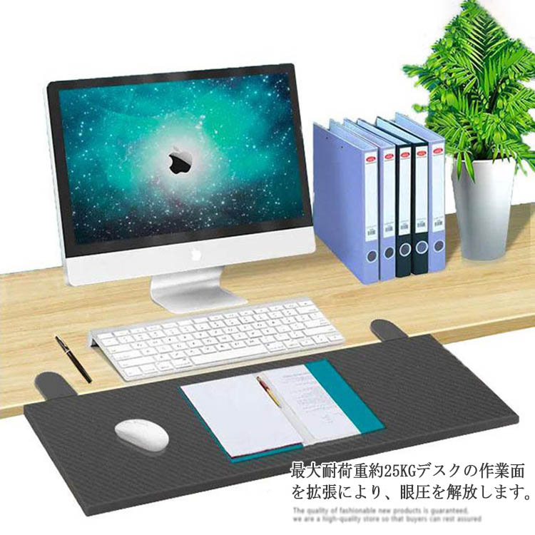 デスク延長トレイ 穴開け不要 折りたたみ式 コンパクト収納 デスクトップエクステンダー パソコン置き台 キーボード台 テーブル延長 取付簡単 肘置き台