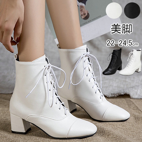 ショート ブーツ レースアップブーツ レディース ラウンドトゥ 厚底 7cm ハイヒール 編み上げ 美脚 無地 黒 白 靴 疲れにくい 脱ぎやすい 英国風ブーツ シンプル カジュアル 旅行 春 秋