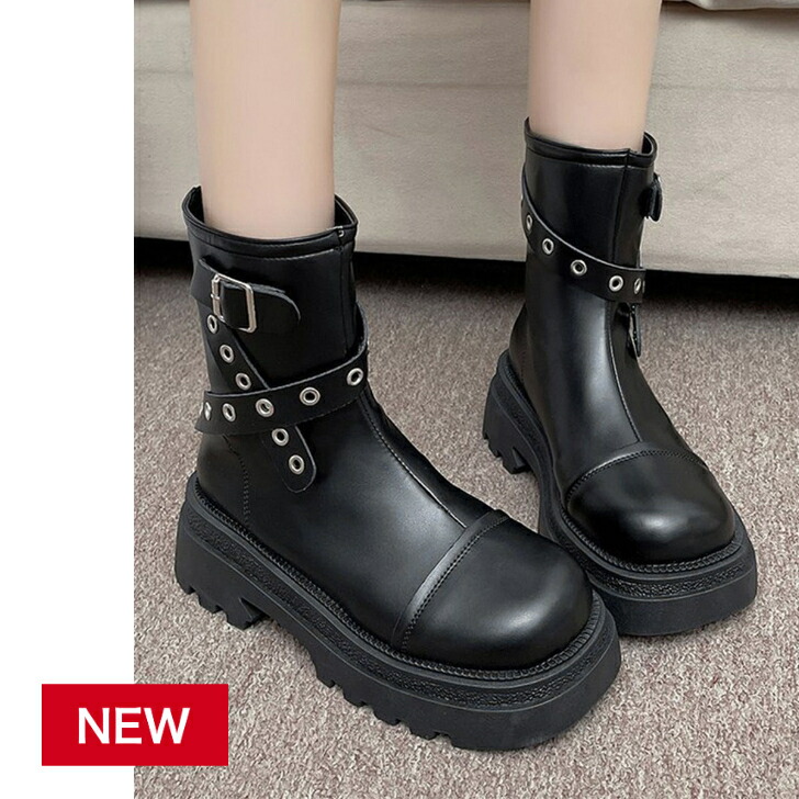 レディース バイカーブーツ ワークブーツ ショートブーツ オルチャン ファスナー カジュアル 歩きやすい オシャレ
