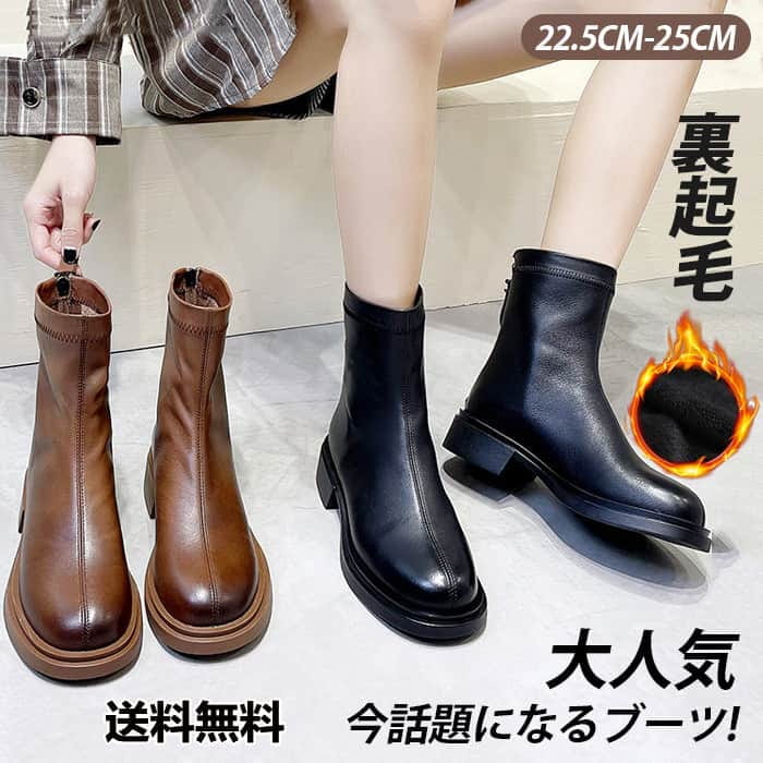 牛革 ブーツ 裏起毛 細やかな質感を持ち 通気性が良い 着ている快適感だけではなく 歩行時に屈曲しやすくなり ローヒール 春ブーツ 秋 冬 ブーツ