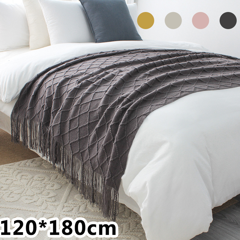 リビング、寝室、オフィスなど 幅広い場面で使える万能ブランケット 肌に柔らかくて暖かい~高級感のあるケーブル編みと可愛いフリンジのデザインがポイント